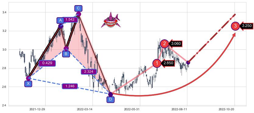 ➣ 已完成【蝙蝠】形态起点X: 2022-03-03, 终点D: 2022-07-14, 共88交易日