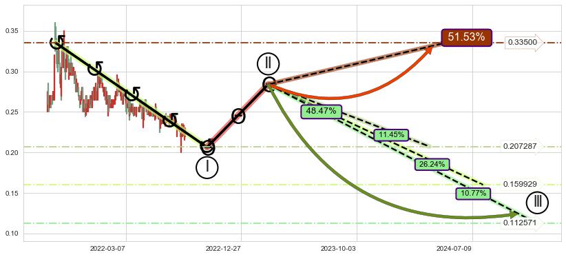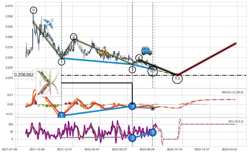 ➣ 5.1: 预测当前第5浪位置(2022-08-03, 0.221000),仍然有下跌空间