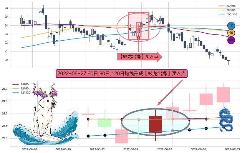 形态多维评估: ⚀ 2022-06-27日显现 60日-90日-120日均线 【蛟龙出海】买入点 看多信号,后市看涨,买入