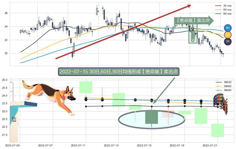 形态多维评估: ⚀ 2022-07-15日显现 30日-60日-90日均线 【绝命跳】卖出点 看空信号,后市看跌,卖出