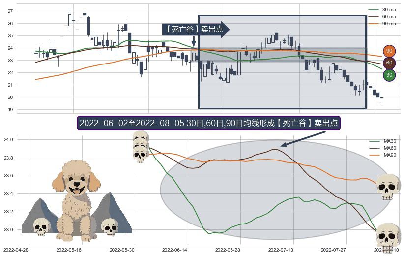形态多维评估: ⚀ 2022-06-06-日至2022-08-05-日显现 30日-60日-90日均线 【死亡谷】卖出点 看空信号,后市看跌,卖出