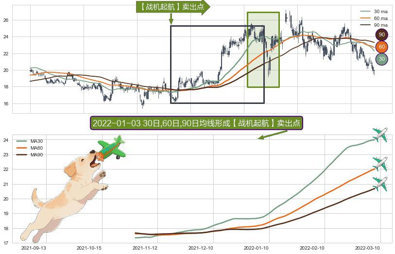 形态多维评估: ⚀ 2021-11-02日-2022-03-08日显现 30日-60日-90日均线 【战机起航】卖出点 看空信号,后市看跌,卖出