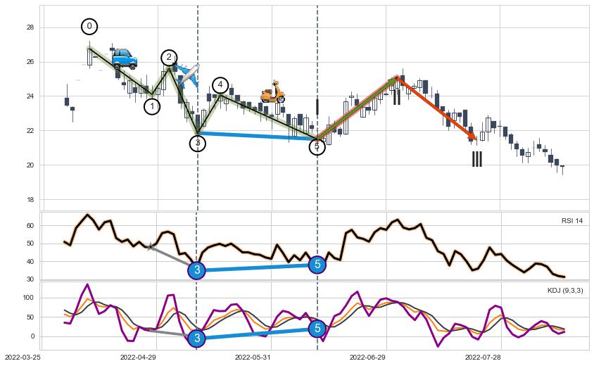 ➣ 1,3,5驱动浪KDJ走势未出现明显背离