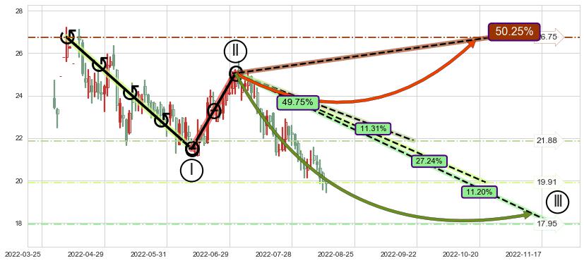 ➢ AI预测: 假定反转如期而至,第❸价格目标位置(2022-10-25, 26.75)