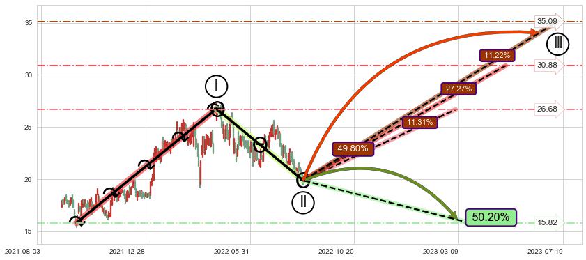 ➣ AI预测: 假定反转启动后, 第❸目标位置(2023-02-28, 26.75)