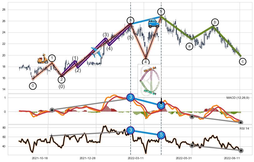 ➣ a,c调整浪MACD, RSI, KDJ走势都【未出现】背离,abc走势延续, 5浪反转概率增强