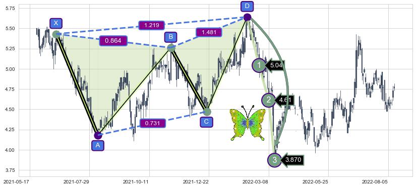➣ 已完成【蝴蝶】形态起点X: 2021-06-18, 终点D: 2022-02-10, 共161交易日