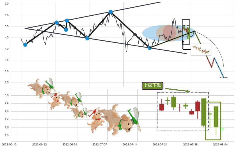 ➢ 高点影线(2022-07-20: 4.95 )→回踩→第二根k线高点(2022-07-11: 4.94 )