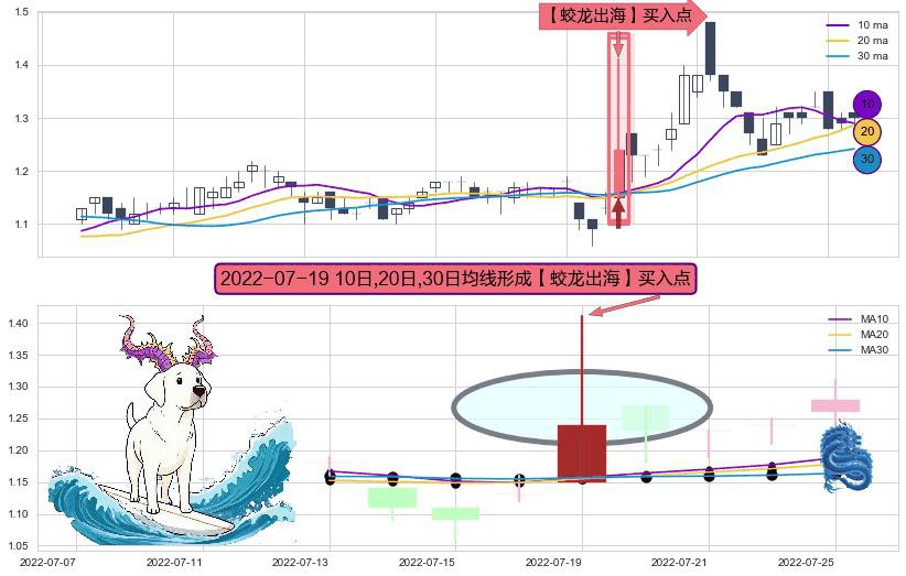 ⚀ 2022-07-19日显现 10日-20日-30日均线 【蛟龙出海】买入点 看多信号,后市看涨,买入