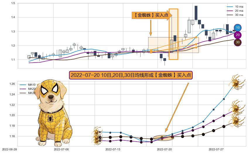 ⚀ 2022-07-20日显现 10日-20日-30日均线 【金蜘蛛】买入点 看多信号,后市看涨,买入