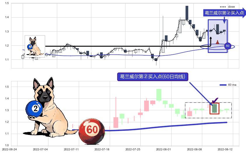 ⚀ 2022-08-10-日显现 葛兰威尔均线 60日均线 第②买入点 上升趋势的中继信号,后市看涨,买进信号
