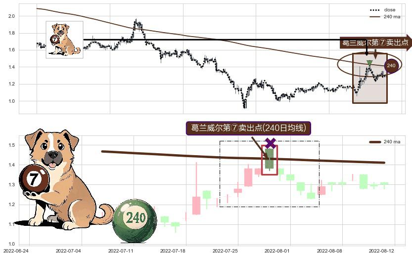 ⚀ 2022-07-28-日显现 葛兰威尔均线 240日均线 第⑦卖出点 下降趋势的中继信号,后市看跌,卖出信号