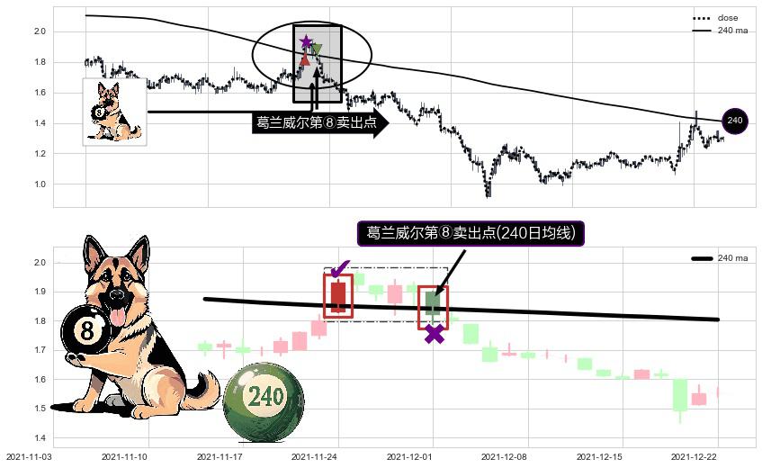 ⚀ 2021-12-01-日显现 葛兰威尔均线 240日均线 第⑧卖出点 下降趋势的中继信号,后市看跌,卖出信号