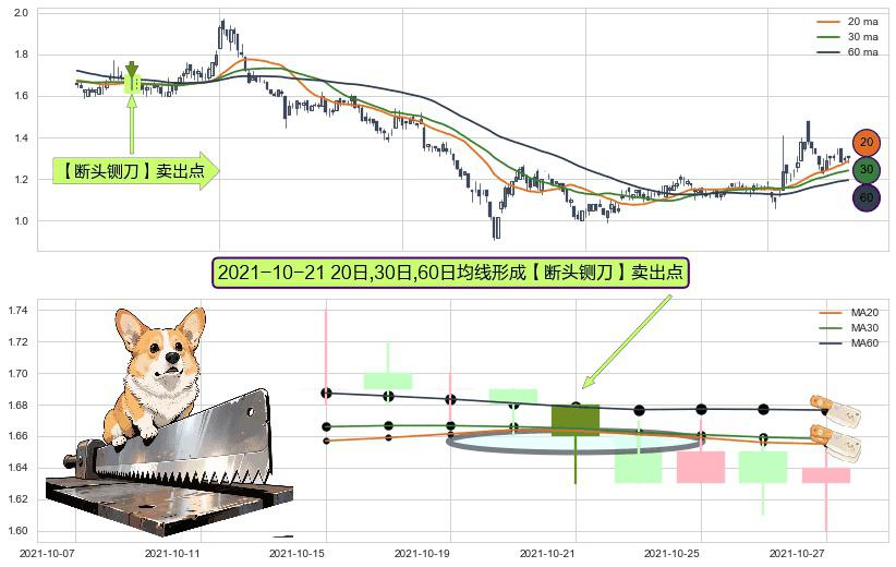 ⚀ 2021-10-21日显现 20日-30日-60日均线 【断头铡刀】卖出点 看空信号,后市看跌,卖出