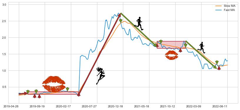 2021-12-09至2022-06-15 慢线与快线呈空头排列, 慢线与快线接触少,无缠绕