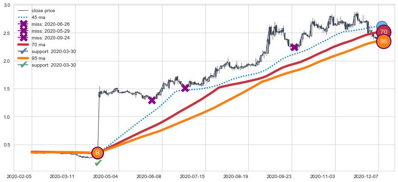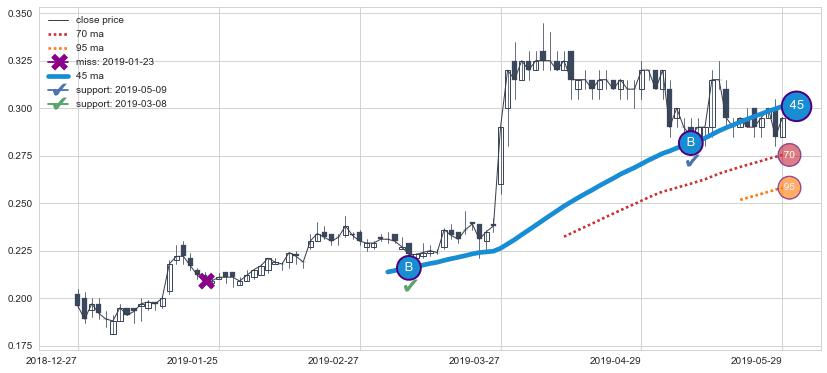 ⚄ 价格在均线获取支撑后再次向上反弹了【极短】距离, 第②买入点 支撑效果【等待验证】