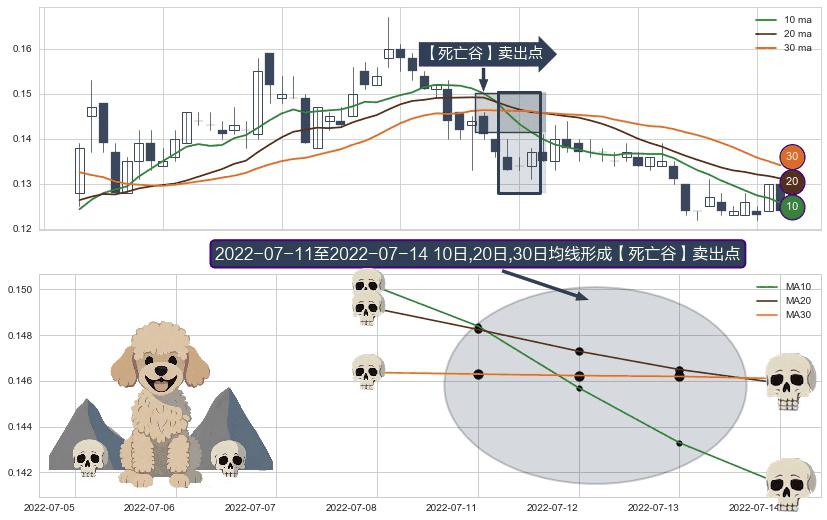 形态多维评估: ⚀ 2022-07-12-日至2022-07-14-日显现 10日-20日-30日均线 【死亡谷】卖出点 看空信号,后市看跌,卖出