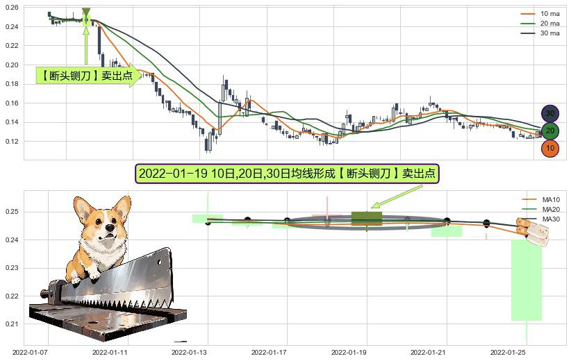 形态多维评估: ⚀ 2022-01-19日显现 10日-20日-30日均线 【断头铡刀】卖出点 看空信号,后市看跌,卖出