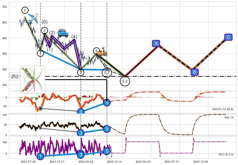 ➣ 5.2: 预测第5浪最终位置(2022-10-28, 252.96)