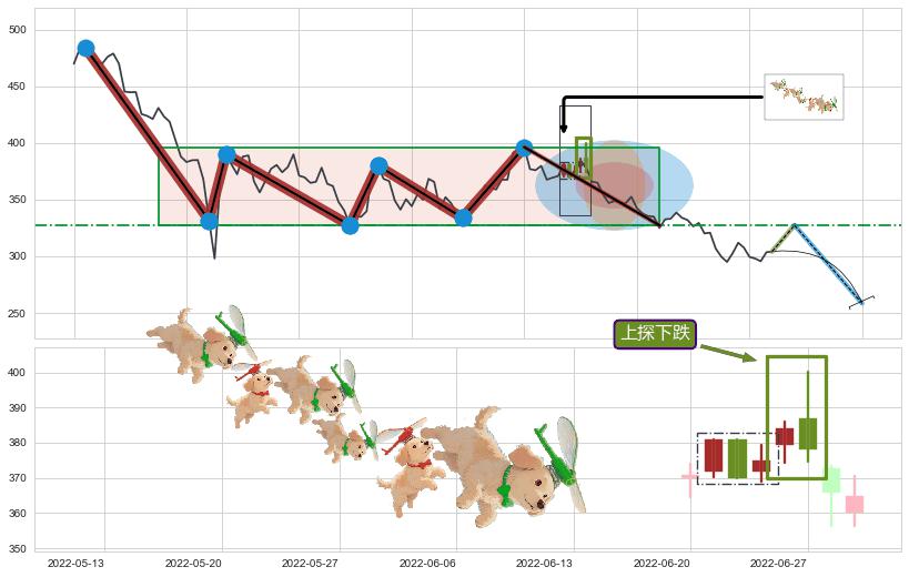 ➢ 【多方力量耗尽】已在2022-07-15突破矩形提供的【支撑】颈线 327.40 →箱形震荡盘整结束