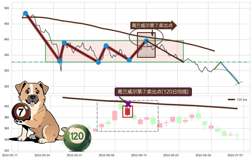 ➢ 【卖1】: 激进型 卖点→(2022-07-15: 327.40 )形成突破下跌矩形整理【整理】形态