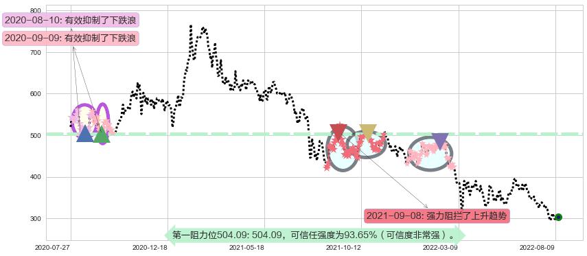 ♘ 阻力价格位504.09,可信任强度93.65%,距离最后交易2022-08-12形成的收盘价格304.20相差 +65.71%