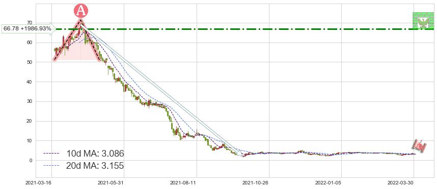 ♘ 阻力价格位66.78,可信任强度61.85%,距离最后交易2022-03-31形成的收盘价格3.200相差 +1986.93%