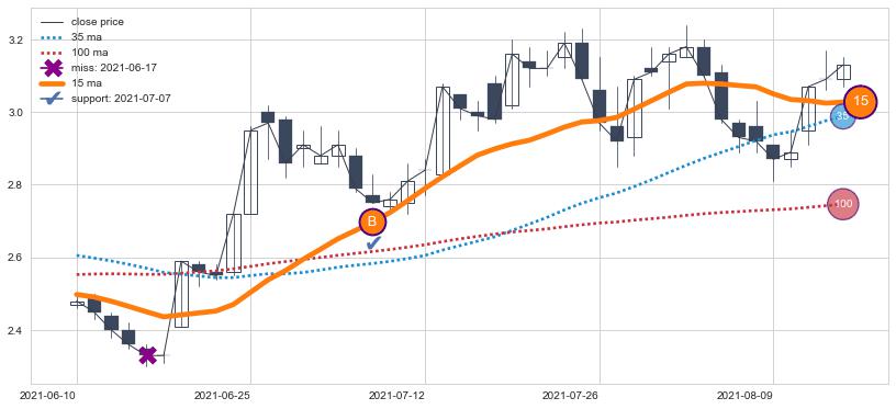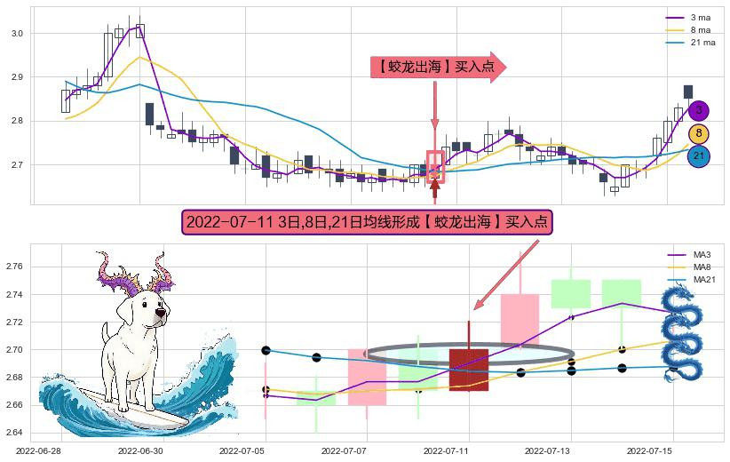 ⚀ 2022-07-11日显现 3日-8日-21日均线 【蛟龙出海】买入点 看多信号,后市看涨,买入