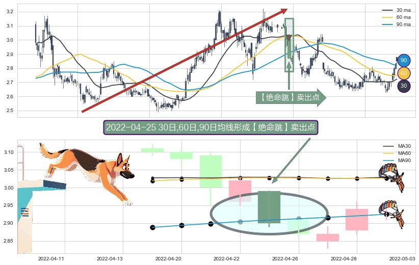 ⚀ 2022-04-25日显现 30日-60日-90日均线 【绝命跳】卖出点 看空信号,后市看跌,卖出