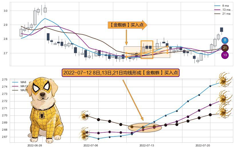 ⚀ 2022-07-12日显现 8日-13日-21日均线 【金蜘蛛】买入点 看多信号,后市看涨,买入
