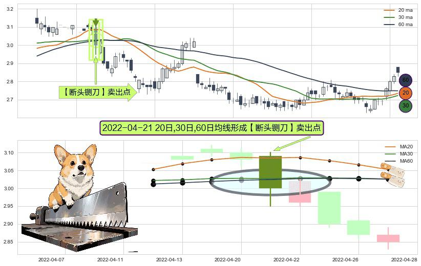 ⚀ 2022-04-21日显现 20日-30日-60日均线 【断头铡刀】卖出点 看空信号,后市看跌,卖出