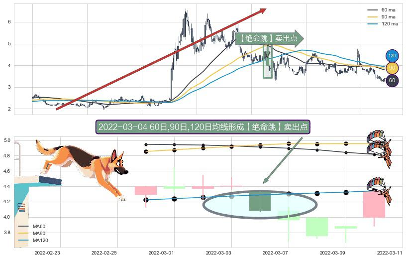 ⚀ 2022-03-04日显现 60日-90日-120日均线 【绝命跳】卖出点 看空信号,后市看跌,卖出