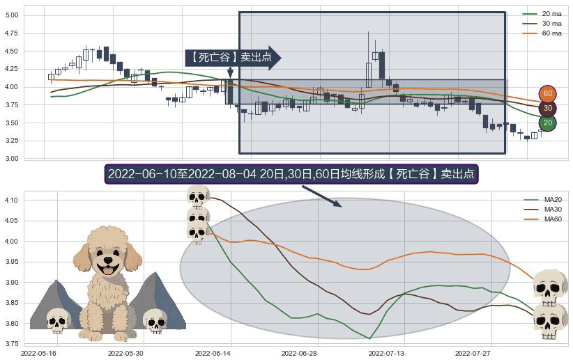 ⚀ 2022-06-13-日至2022-08-04-日显现 20日-30日-60日均线 【死亡谷】卖出点 看空信号,后市看跌,卖出