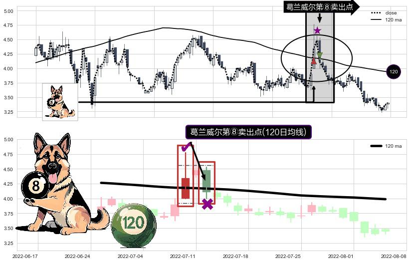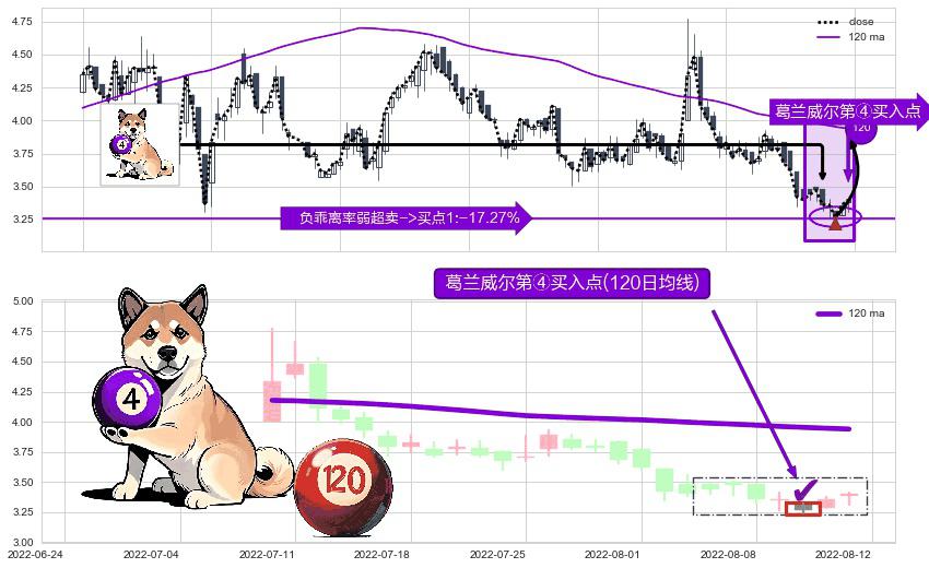 ⚀ 2022-08-10-日显现 葛兰威尔均线 120日均线 第④买入点 下降趋势均值回复的短线反弹信号,后市看涨,买进信号
