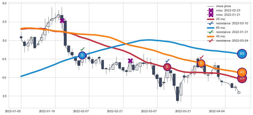 ⚂ 2022-07-08-日均线向上突破,2022-07-12-日重新下穿均线破位,均线阻力再次生效