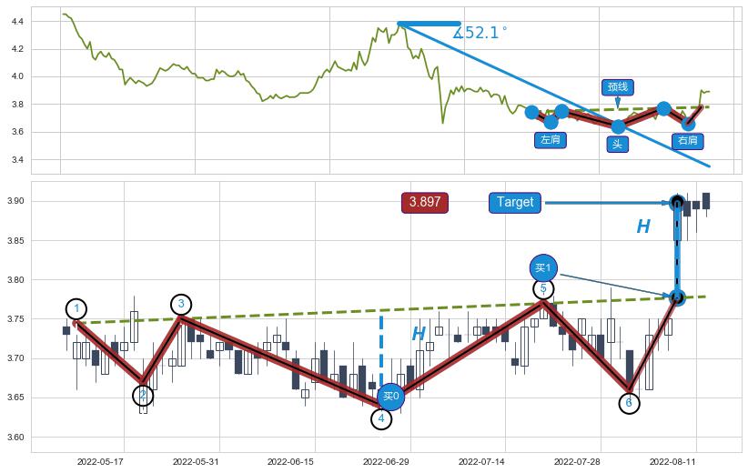 ➢ 【买1】: 激进型 买点 →(2022-08-09: 3.777 )形成突破头肩底【反转】形态