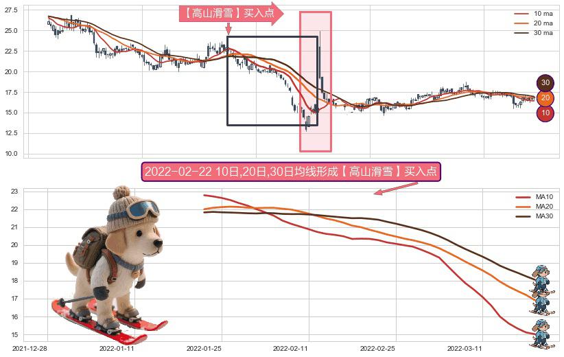 ⚀ 2022-01-21日-2022-03-21日显现 10日-20日-30日均线 【高山滑雪】买入点 看多信号,后市看涨,买入
