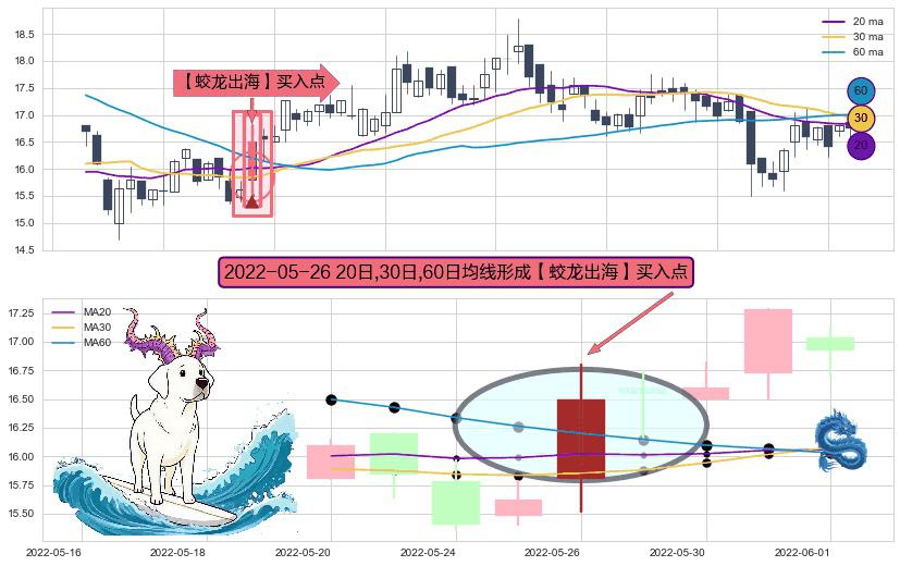 ⚀ 2022-05-26日显现 20日-30日-60日均线 【蛟龙出海】买入点 看多信号,后市看涨,买入
