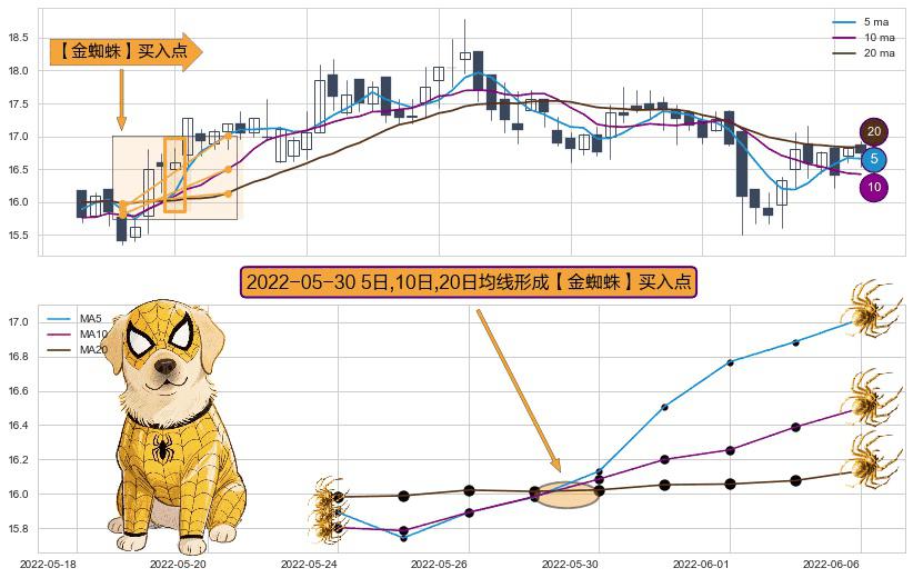 ⚀ 2022-05-30日显现 5日-10日-20日均线 【金蜘蛛】买入点 看多信号,后市看涨,买入
