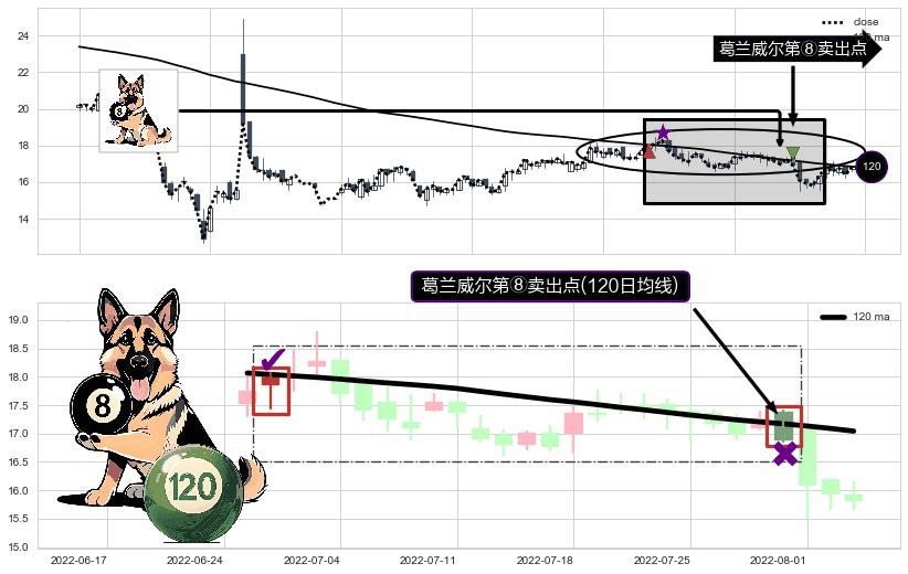 ⚀ 2022-07-29-日显现 葛兰威尔均线 120日均线 第⑧卖出点 下降趋势的中继信号,后市看跌,卖出信号