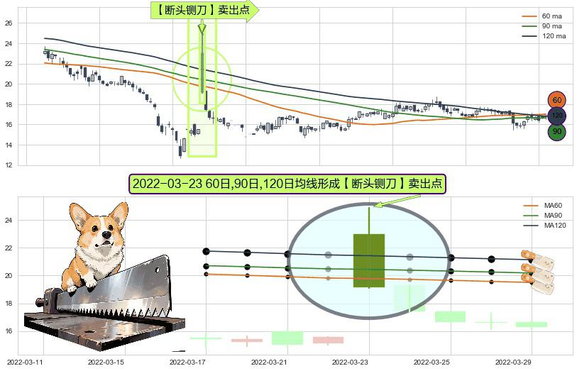 ⚀ 2022-03-23日显现 60日-90日-120日均线 【断头铡刀】卖出点 看空信号,后市看跌,卖出