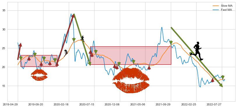2021-09-30至2022-08-02 慢线与快线呈空头排列, 慢线与快线接触少,无缠绕