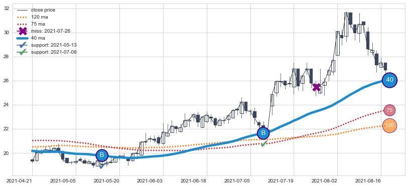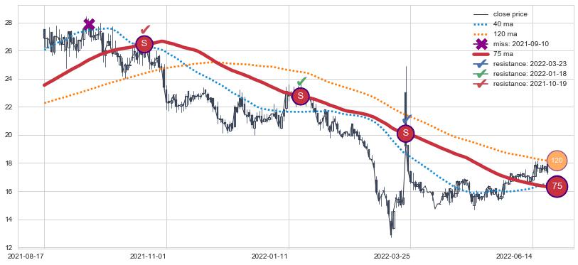 ⚂ 2022-06-28-日均线向上突破,2022-07-29-日重新下穿均线破位,均线阻力再次生效