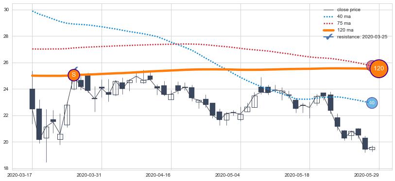 ⚃ 在破位点附近ma走势已有下垂迹象,稍后的走势中ma下降趋势明显,信号【可信度高】