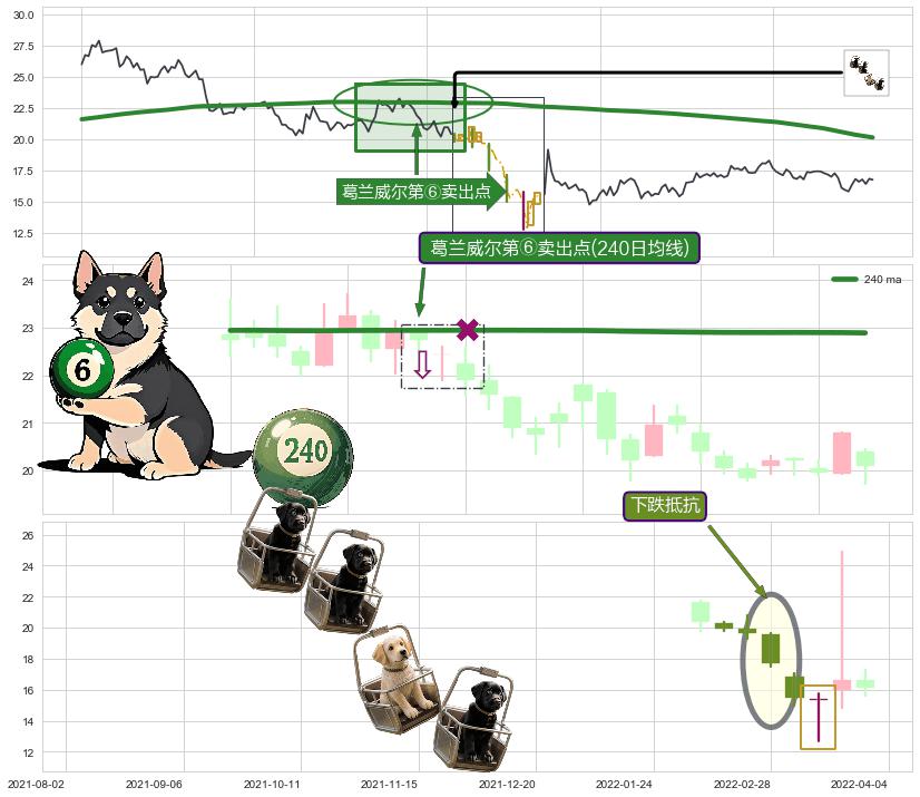 | 2 🅚:下跌两颗星 | 下跌三颗星 ➕ 🎢:葛兰威尔第⑥卖出点卖出点信号形成后,猜想后续上涨趋势反转下跌趋势(均值回复) ☞ 看空信号 ⇥ 【均线】交织【🅚线】⇥ 综合量化分数: 43 | > |