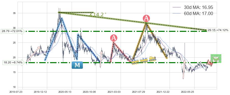 ♘ 阻力价格位18.20,可信任强度70.23%,距离最后交易2022-08-12形成的收盘价格16.74相差 +8.74%