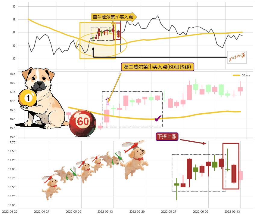 | 4 🅚:两红夹一黑 ➕ 🎢:葛兰威尔第①买入点买入点信号形成后,猜想后续下跌趋势反转上涨趋势(均值回复) ☞ 看多信号 ⇥ 【均线】交织【🅚线】⇥ 综合量化分数: 52 | > |