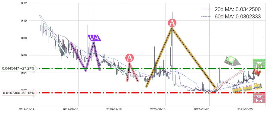 ♘ 阻力价格位0.0445447,可信任强度71.39%,距离最后交易2021-06-30形成的收盘价格0.0350000相差 +27.27%