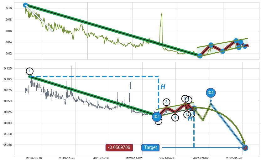 ➣ 最小中继整理跌幅→𝐇: 0.0900000 (𝐇旗杆的长度:旗杆起点→顶点)