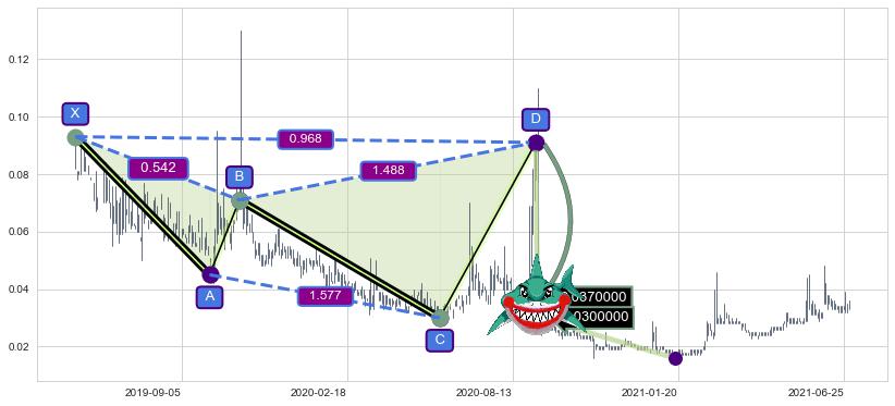 ➣ 已完成【鲨鱼】形态起点X: 2019-04-01, 终点D: 2020-09-08, 共279交易日
